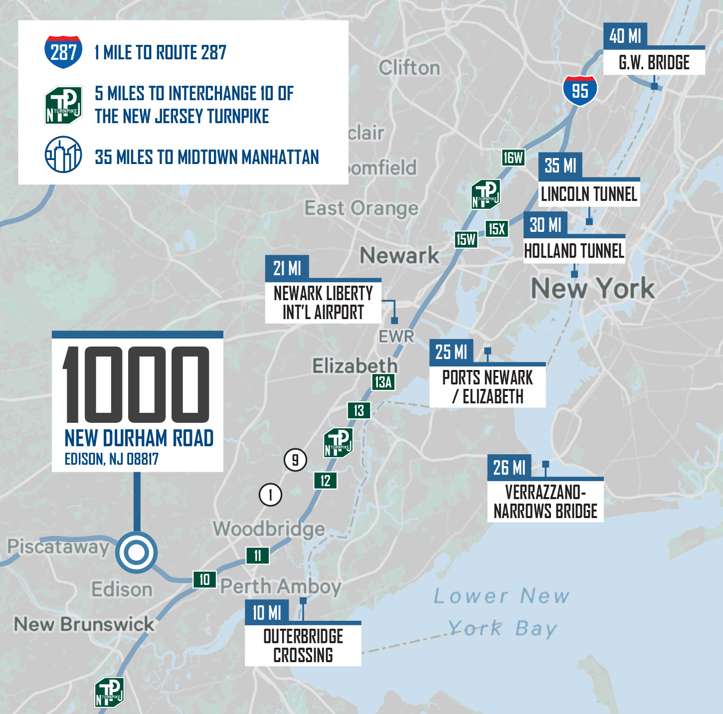 | NEWARK LIBERTY INT’L AIRPORT | 21 MILES |